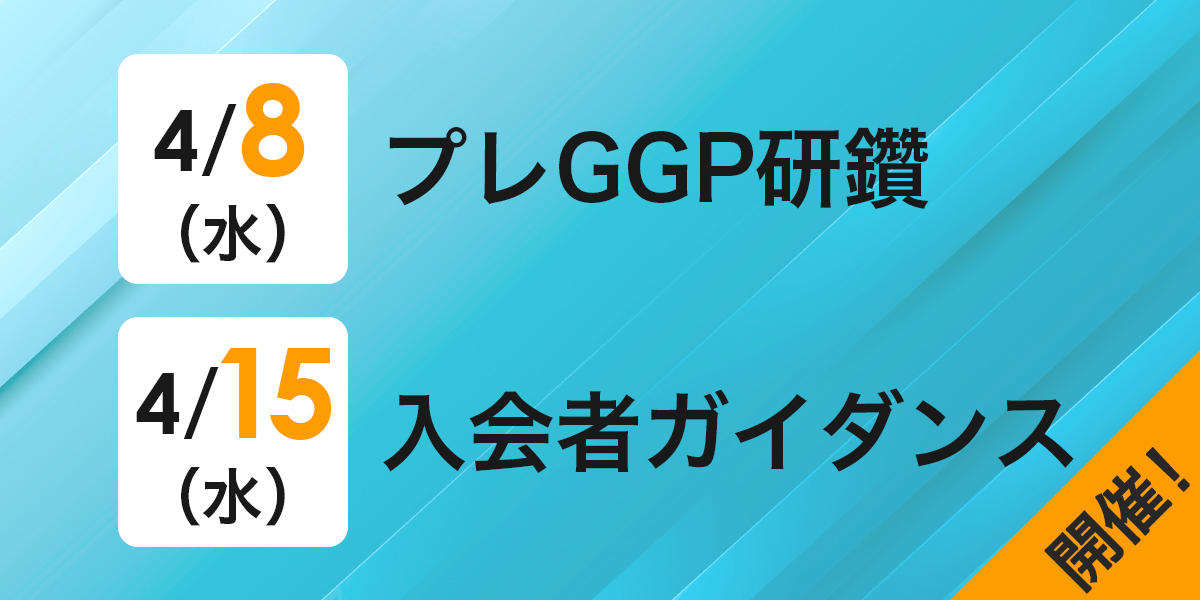 4月8日(水)「プレGGP研鑽」、4月15日(水)「入会者ガイダンス」会員ならばどなたでもご参加いただけます!