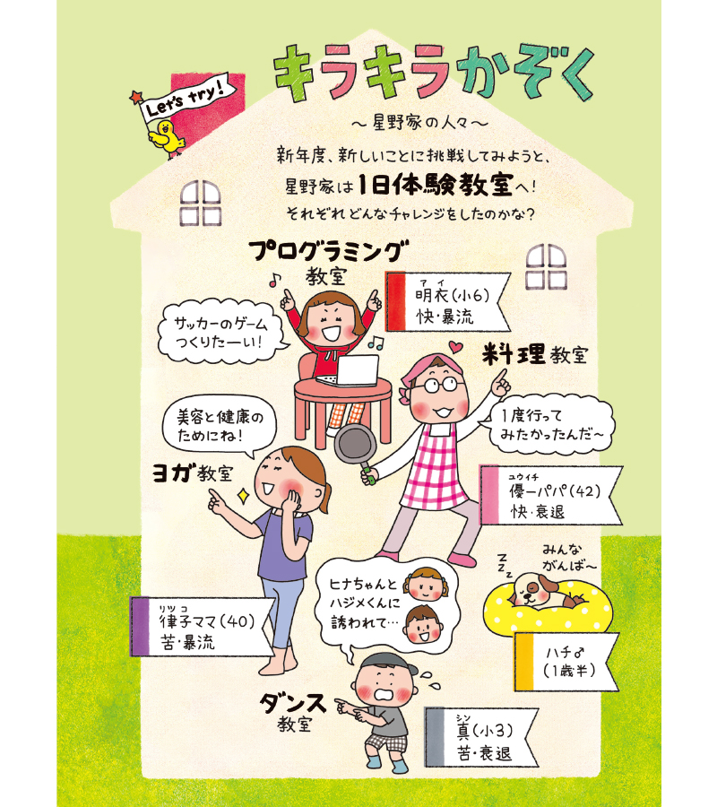 GLAの月刊誌(会員対象)で連載中の4コマ漫画『キラキラかぞく~星野家の人々~』。
