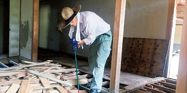 Kさんのアドバイスによって、家屋をとり壊した方がいいのか、リサイクルできるのかを検討の上、生活再開に向けて具体的な作業が始まりました。(8月1日)